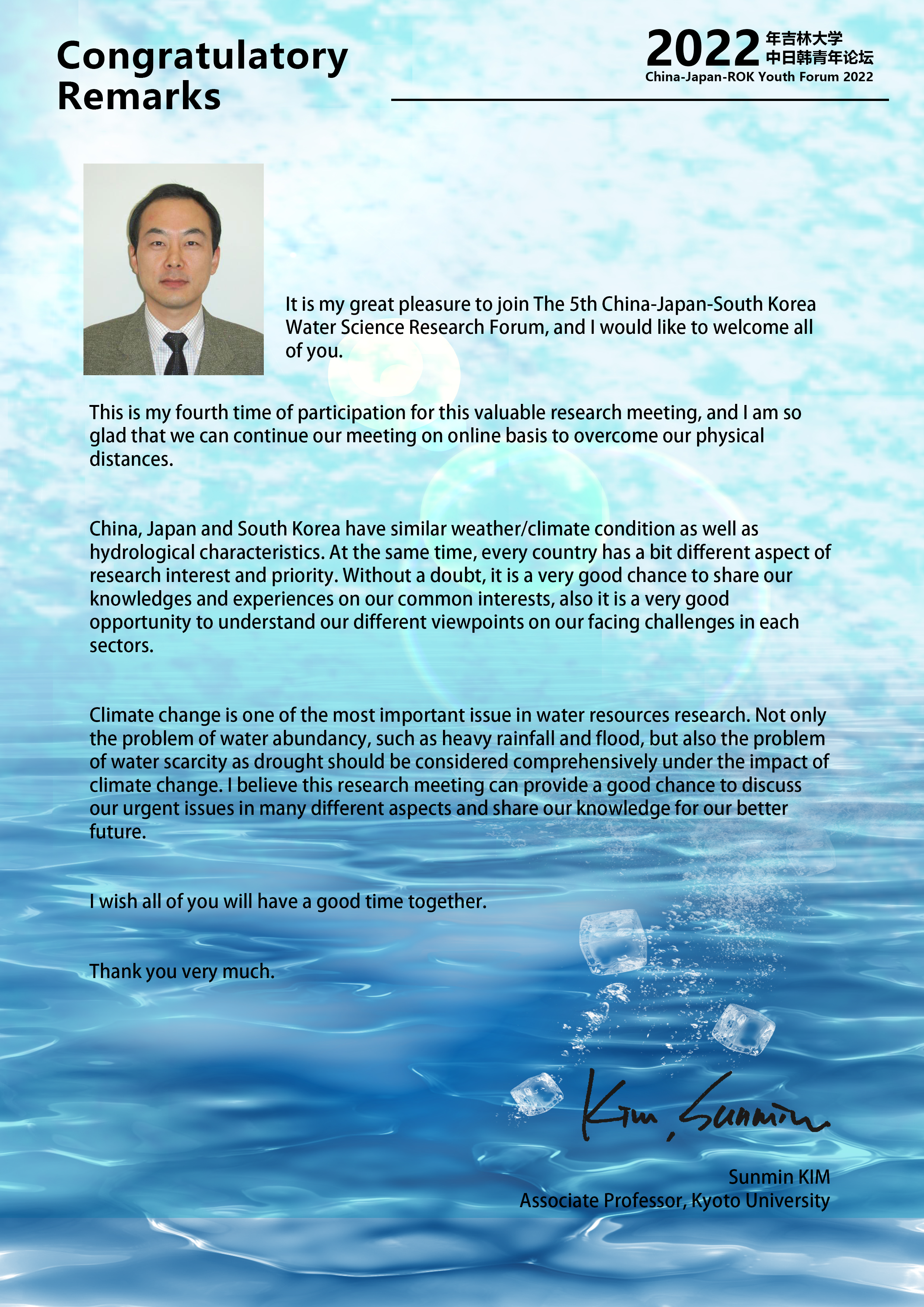 The 5th China-Japan-South Korea Water Science Research Forum, as a part of 2022 China-Japan-South Korea Forum of Jilin University, will be held online by the College of New Energy and Environment at Jilin University on November 19-20, 2022.