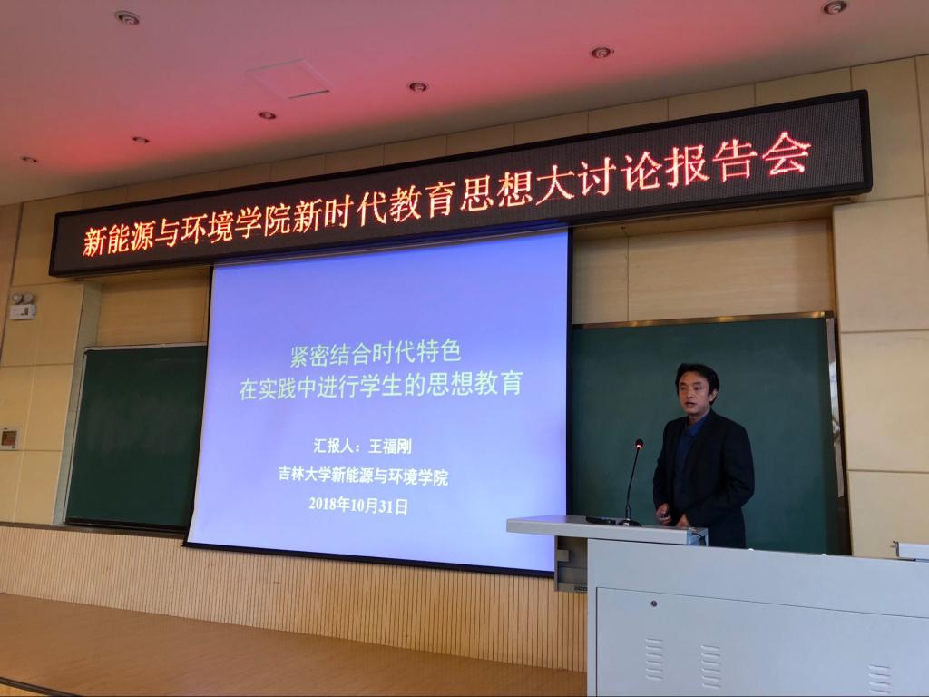 根据公司工作计划总体安排, 20181031日下午,太阳成tyc122cc集团在北区理化楼第一阶梯教室召开了本学期首次新时代教育思想大讨论报告会。公司班子成员、公司教学委员会委员和全体教职员工出席讨论会。报告会由教学副经理卞建民主持。