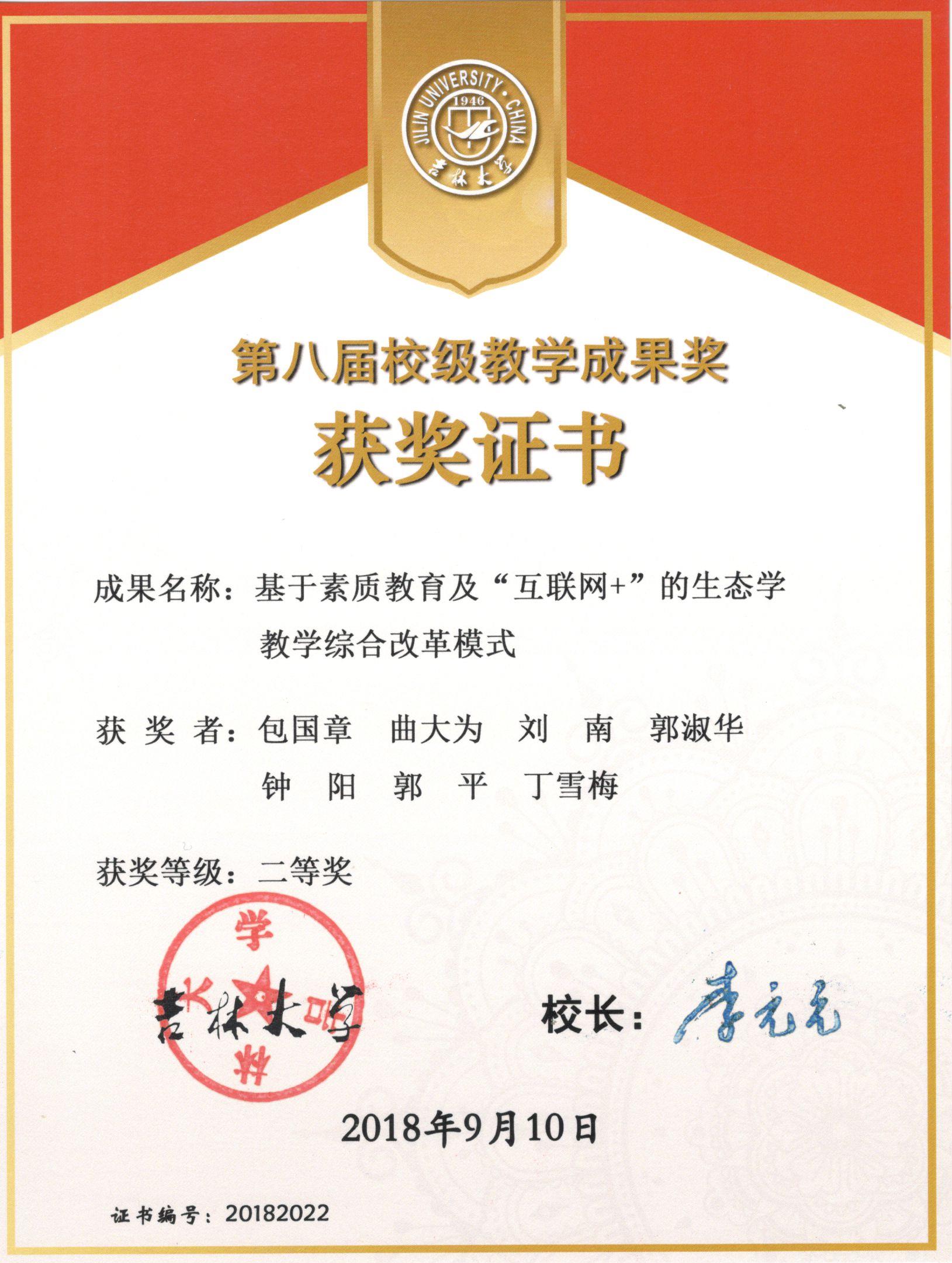 成果名称:基于素质教育及“互联网+”的生态学教学综合改革模式