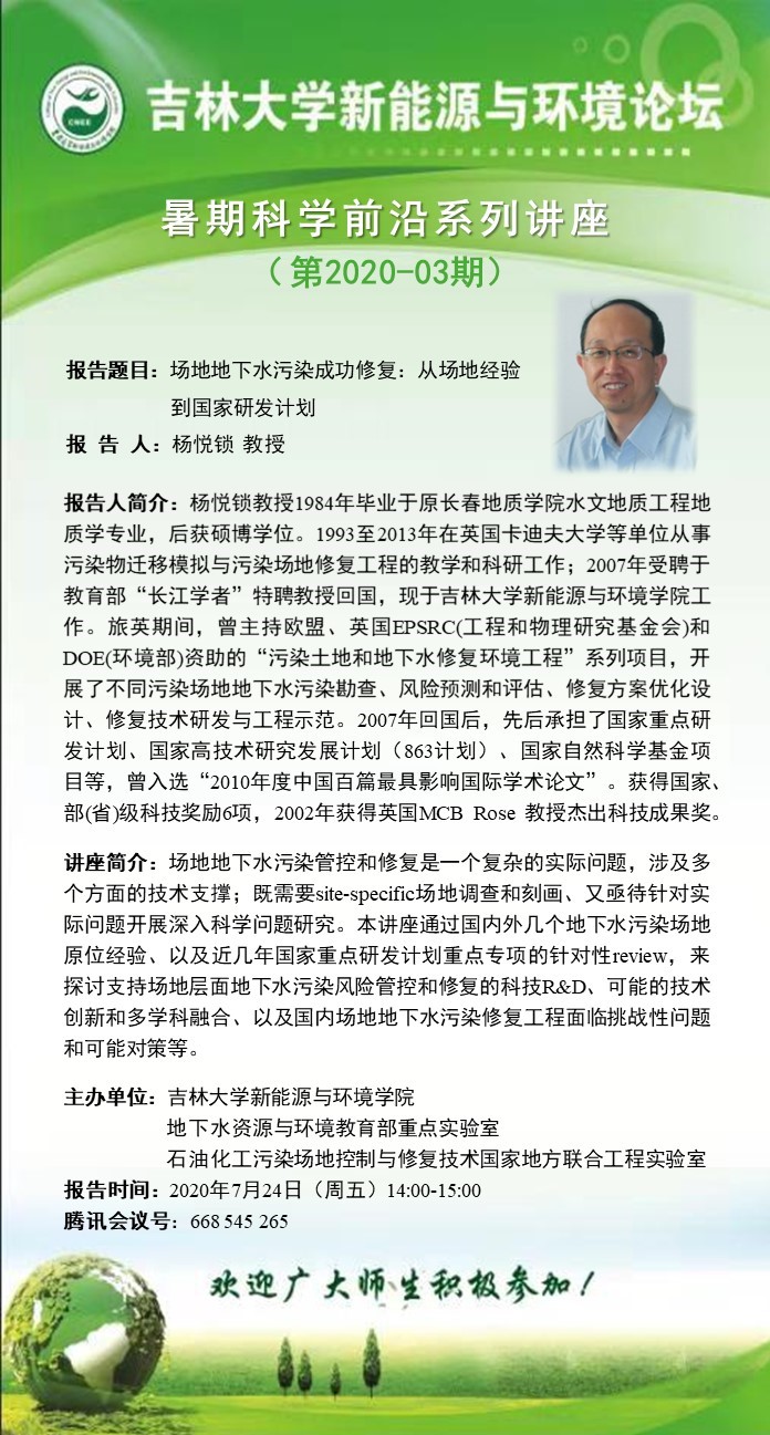 太阳成tyc122cc集团新能源与环境论坛——暑期科学前沿系列讲座
