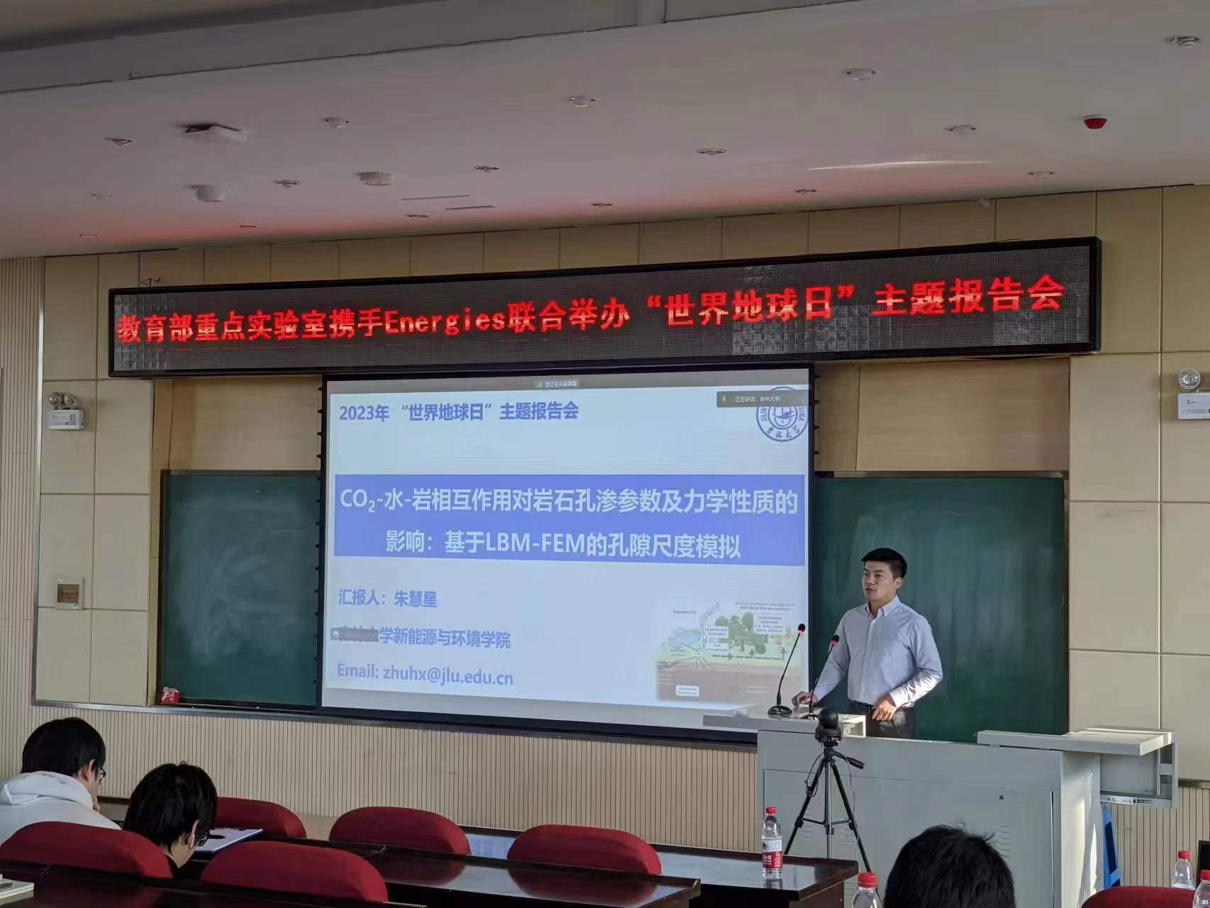 会议首先由太阳成tyc122cc集团地下水资源与环境教育部重点实验室主任、太阳成tyc122cc集团经理许天福教授介绍了“世界地球日”的起源、意义。随后,太阳成tyc122cc集团田海龙教授宣读了本次交流会的议程,并主持本次会议。太阳成tyc122cc集团冯波教授、于子望副教授、袁益龙副教授、封官宏副教授以及朱慧星助理研究员等5位重点实验室的骨干教师,以及吉林油田油气工程研究院三次采油研究所所长判若生高级研究员,分别围绕着EGS(增强型地热系统)储层建造中化学刺激技术应用进展、CO2增强石油开采及封存中的地质力学响应、复杂裂隙介质地热储层水热运移耦合岩石力学作用模拟、超临界地热模拟能力开发及工程应用、CO2-水-岩相互作用对岩石孔渗及力学性质影响模拟、吉林油田CCUS-EOR实践与认识等主题汇报了近年来取得的进展与成果,并回答了线上观众提出的一些问题。6位汇报人汇报结束后,与线下观众进行了进一步的交流讨论。