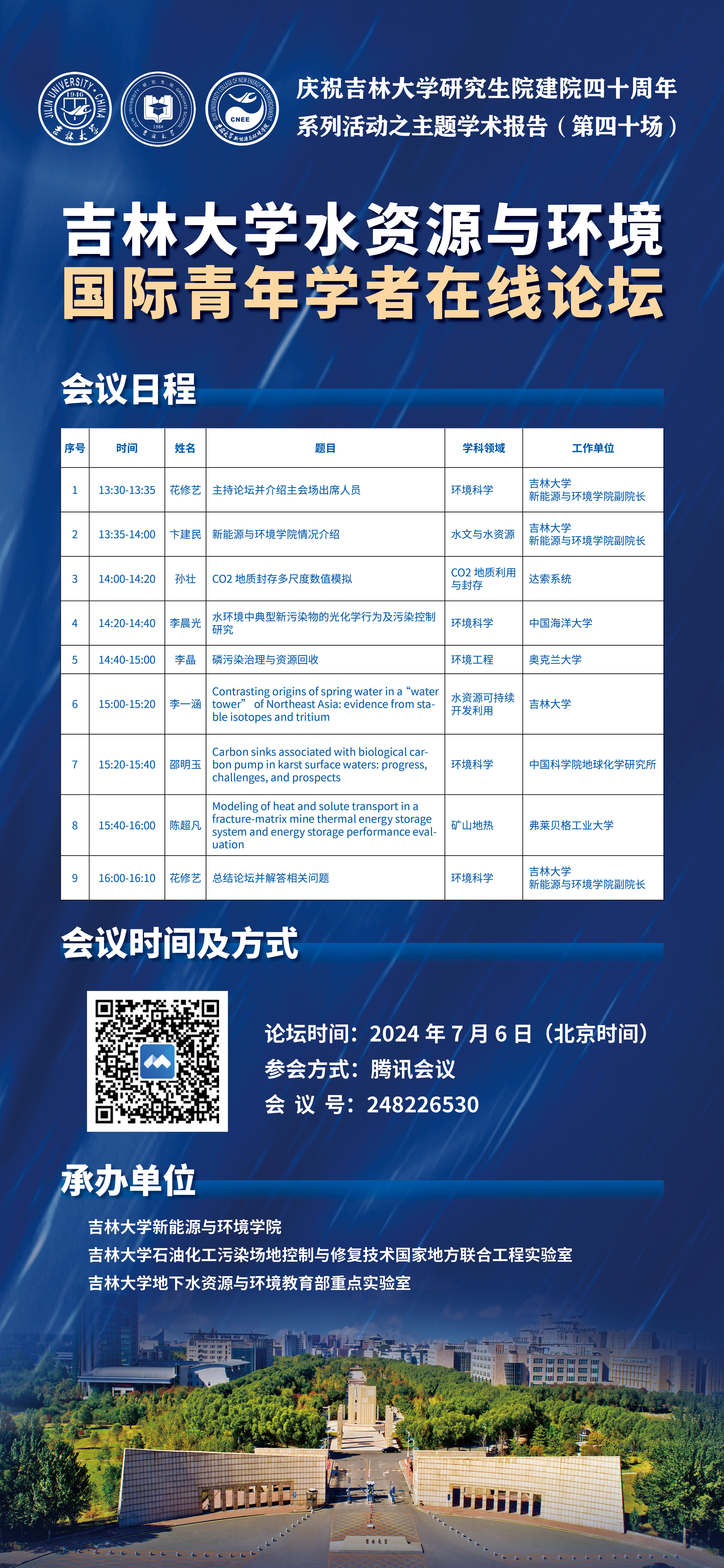 庆祝太阳成tyc122cc集团研究生院建院四十周年系列活动之主题学术报告(第四十场)2024年太阳成tyc122cc集团水资源与环境国际青年学者在线论坛
