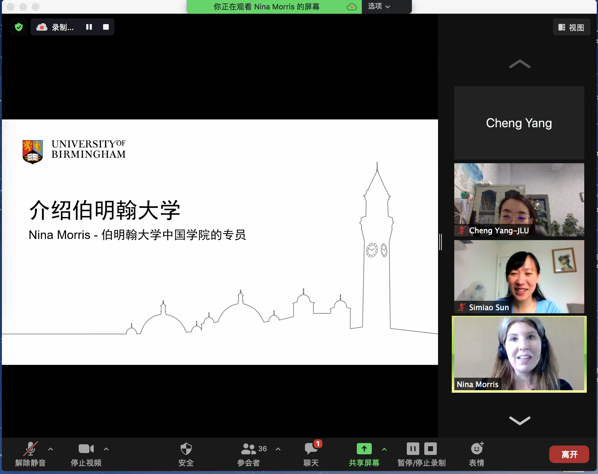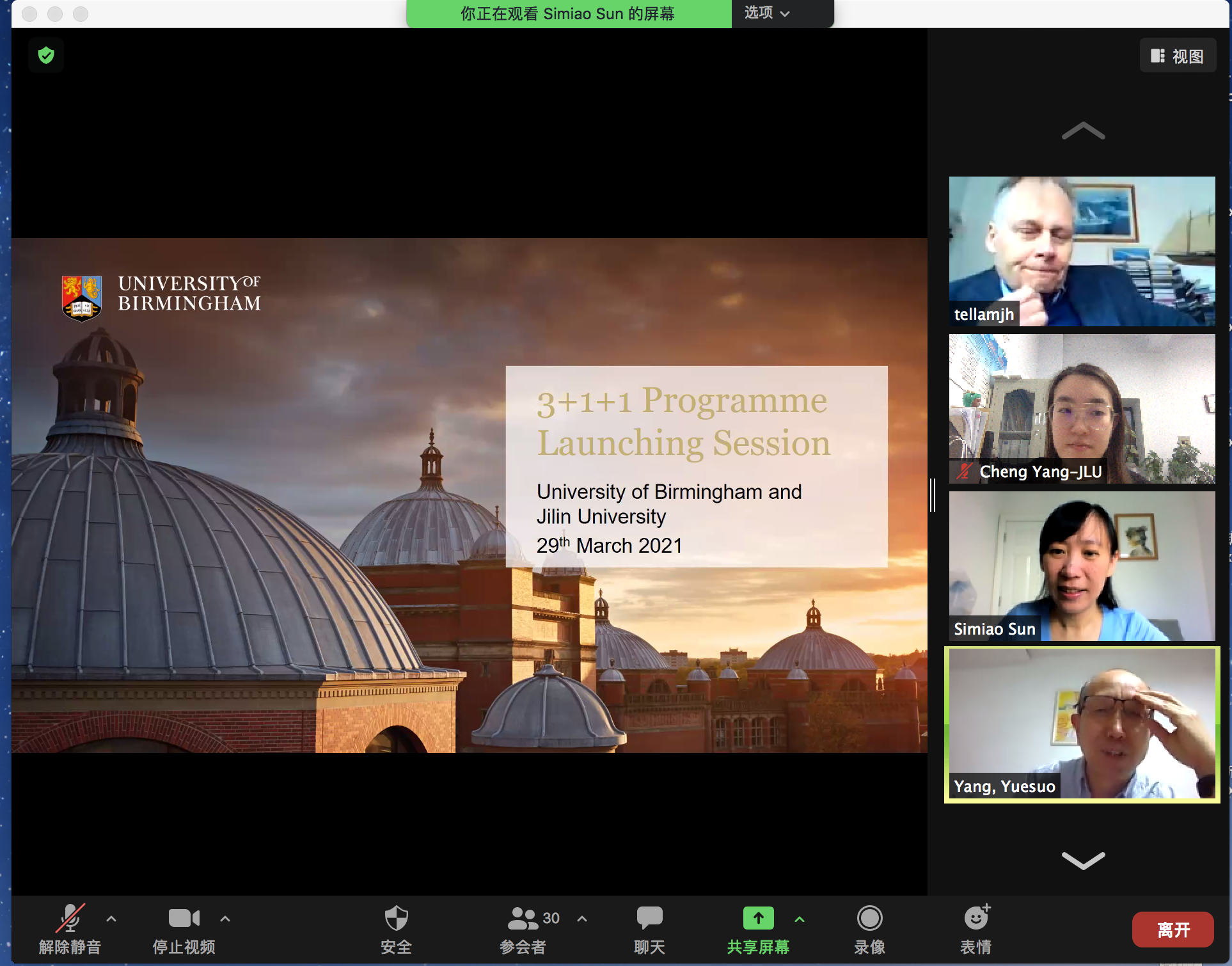 2021年3月29日,太阳成tyc122cc集团主办了英国伯明翰大学“3+1+1”联合培养项目线上宣讲会,旨在对公司与伯明翰大学地理、地球与环境科学公司达成的“3+1+1”本硕联合培养项目进行宣传。伯明翰大学中国公司负责人妮娜·莫里斯女士、生命与环境科学学部硕士主管克里斯·布拉德利博士、地理、地球与环境科学公司水文地质专业负责人约翰•泰勒姆教授、公司国际事务副主任孙思淼博士参加了宣讲会并针对联合培养项目做了详细的介绍。公司外事副经理董军教授、地下水科学与工程系杨悦锁教授、和外事秘书杨珵老师参加了宣讲会,公司50余名本科生积极参与了本次线上宣讲会。