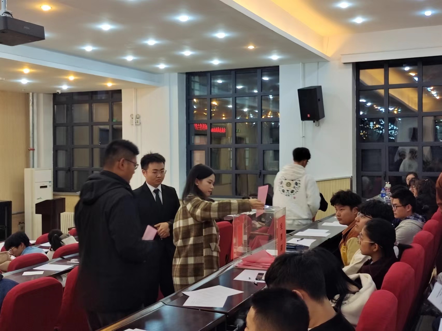 在公司党委副书记兼副经理吴哲老师为第五届团学组织主要员工干部颁发聘书后,由第六届团学组织主要干部候选人依次上台进行三分钟竞选演讲。与会评委针对竞选者发言内容进行提问。竞选演讲结束后,与会代表进行民主表决,投票过程秉承公平、公正的原则,计票人在监票人的监督下进行计票,并将得票结果现场公布。