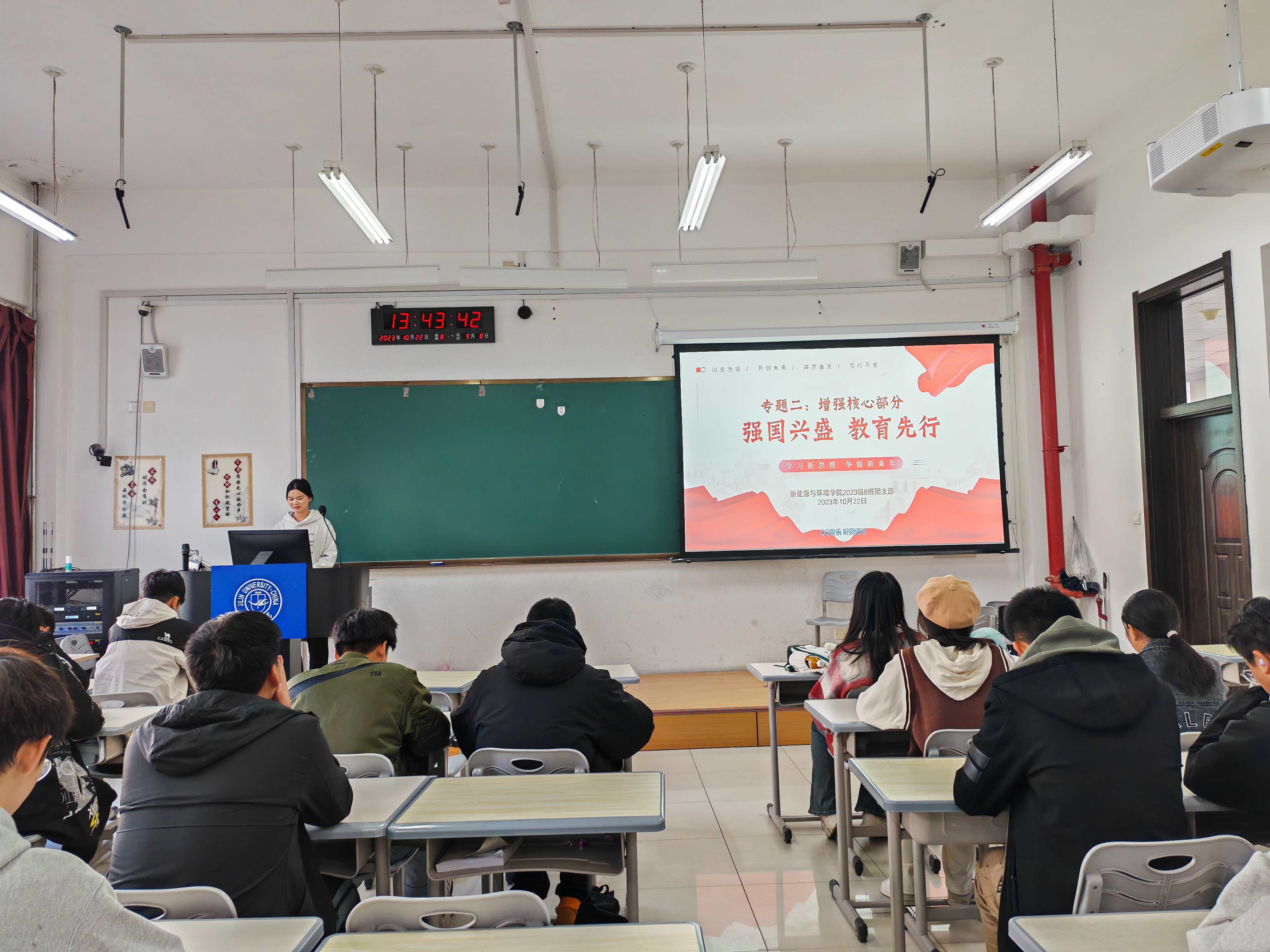 重教尚学是中华民族世代的优良传统,是中华民族生生不息的内在动力。为深入贯彻习近平总书记中国特色社会主义思想,深入领会其建设教育强国精神内涵,2023年10月22日下午,太阳成tyc122cc集团新能源与公司2023级8班团支部在团支书蒋昕敏的带领下开展了“强国兴盛 教育先行”主题团日活动。本次团日活动参与人员有支部内全体22名共青团员和7名班级成员。