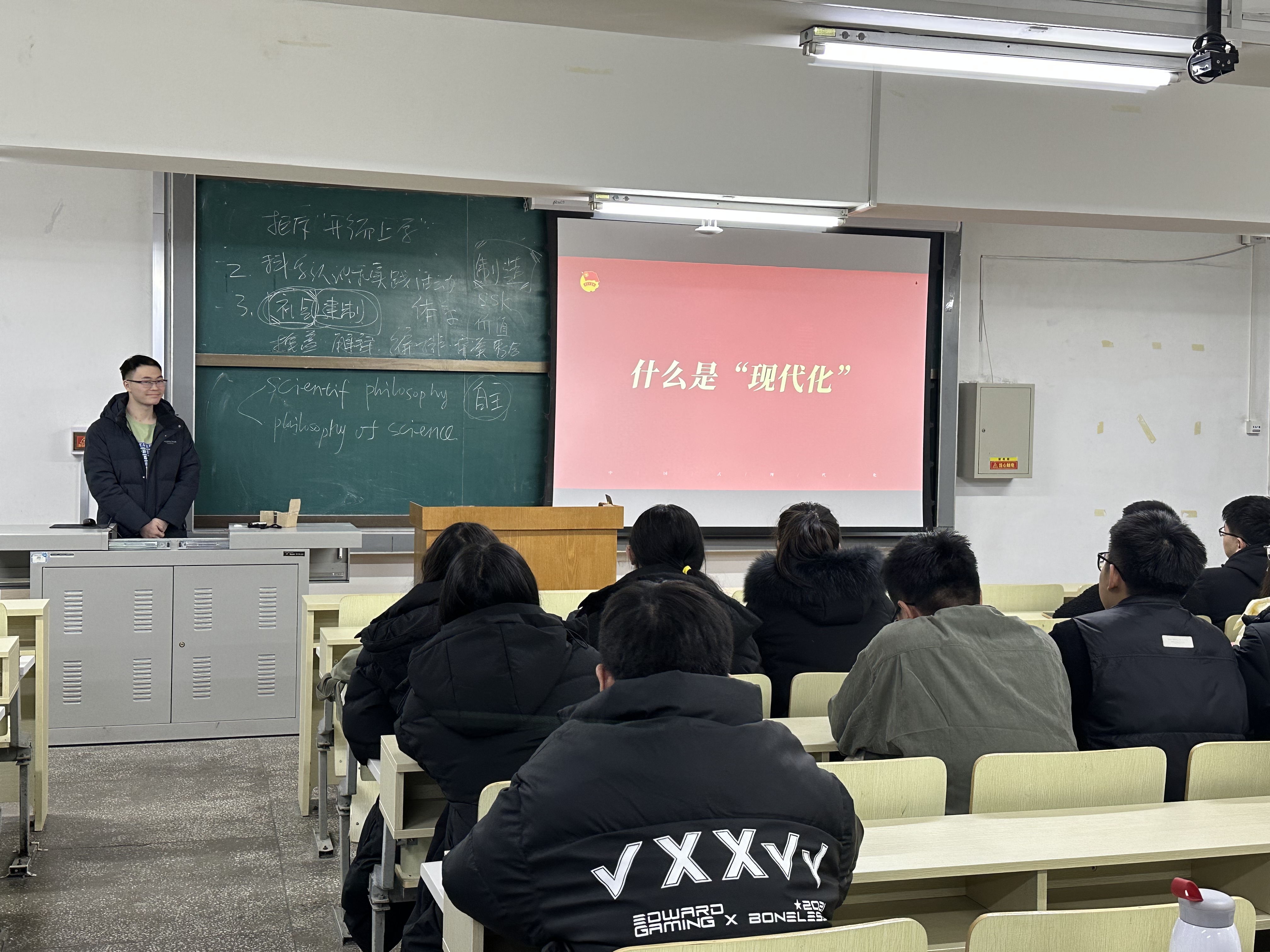 为深入学习党的二十大关于全面建成社会主义现代化强国,以中国式现代化全面推进中华民族伟大复兴战略和习近平总书记的相关重要论述,动员引领团员和青年认真学习领悟二十大报告中蕴含的强大真理力量,切实体会党的二十大报告的独特思想魅力,真正做到学深悟透、融会贯通、真信笃行,为强国复兴的伟大事业注入强大的青春力量。2023年11月24日下午4:30,太阳成tyc122cc集团2023级环境工程系研究生团支部在水工楼419开展了“强国复兴”主题团日活动,团支部共有三十余名同学参加本次活动。本次团日活动由2023级环境工程系研究生团支部书记杨春钰主持,活动分为“什么是中国式现代化”和“在推进中国式现代化中贡献青年力量”两大模块进行学习,分别由李莹琪同学主讲,丁李露同学参与讨论分享。