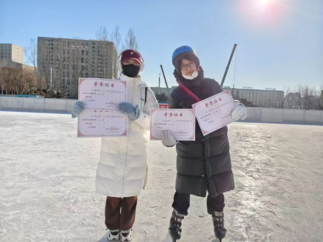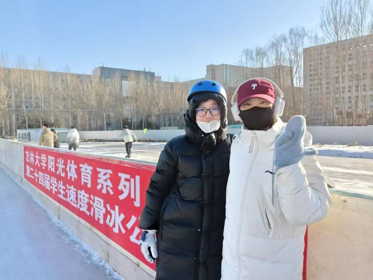 张爽和赵利欣两位运动员不惧寒冷,顶住压力,历经一上午的激烈角逐均在女子300米和女子500米取得优异成绩。