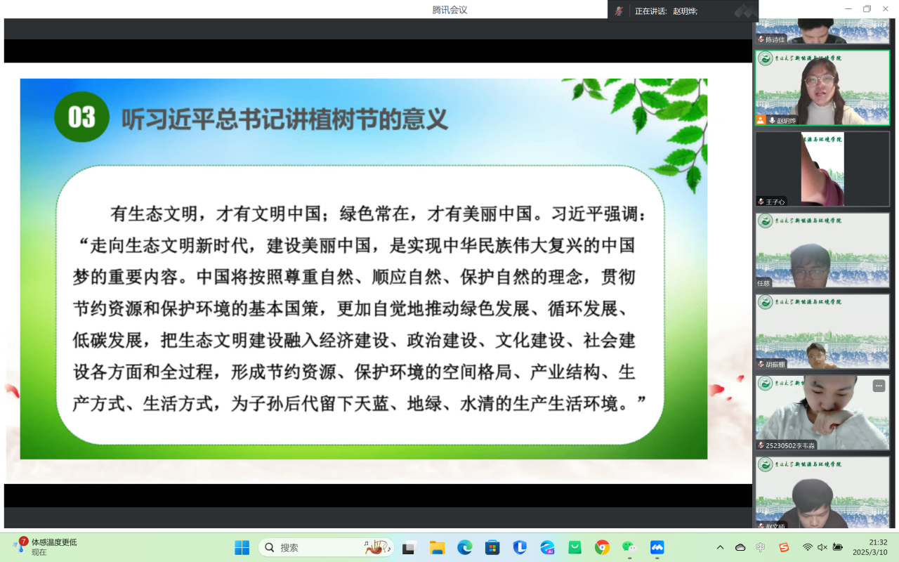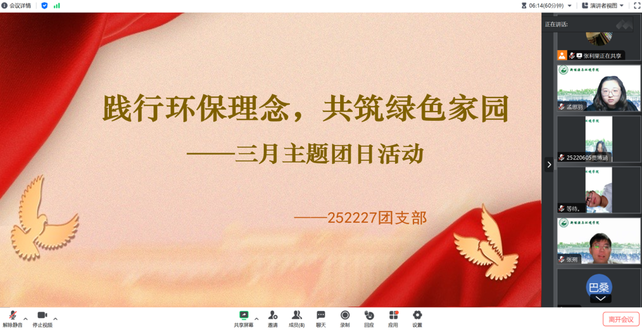 252227团支部在会议中放映了绿色环保教育影片。影片通过生动的画面和故事,让团员们直观感受到绿色环保与植树的重要意义。