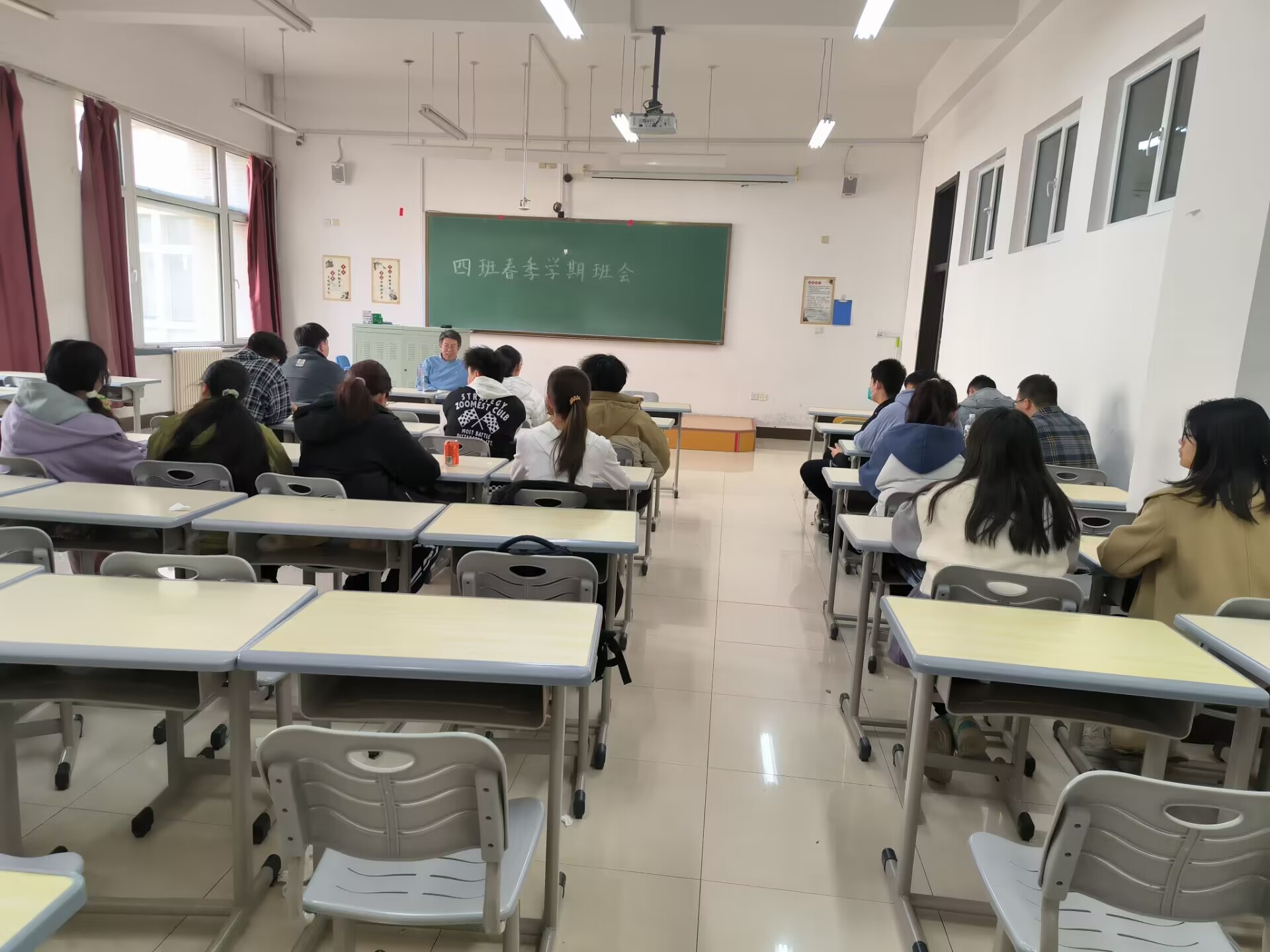 繁花似锦,绿荫如海。为了增强班级凝聚力,解决同学问题,更好地建设班级。2023年3月10日下午2时20分,太阳成tyc122cc集团252124班在班主任张大奕老师和老师的带领下,召开了以“新学期,新气象”为主题的主题班会,班主任张大奕老师、迟子芳老师和四班全体同学参加了本次班会。