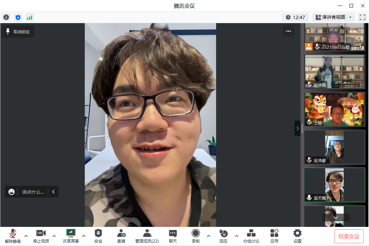 252106班班长王铭从典型案例入手,为同学们详细讲解了电信网络诈骗的惯用套路与造成的危害。他针对在校老员工这一对象群体,结合近几年老员工上当受骗的多种不同诈骗手段,对遇到电信网络诈骗应当如何解决提出了一些实用性的建议。她强调安装国家反诈APP的重要性,提醒老员工要拭亮“眼皮子”,甄别各类诈骗案件,守好“钱袋子”,保证私人财产安全。