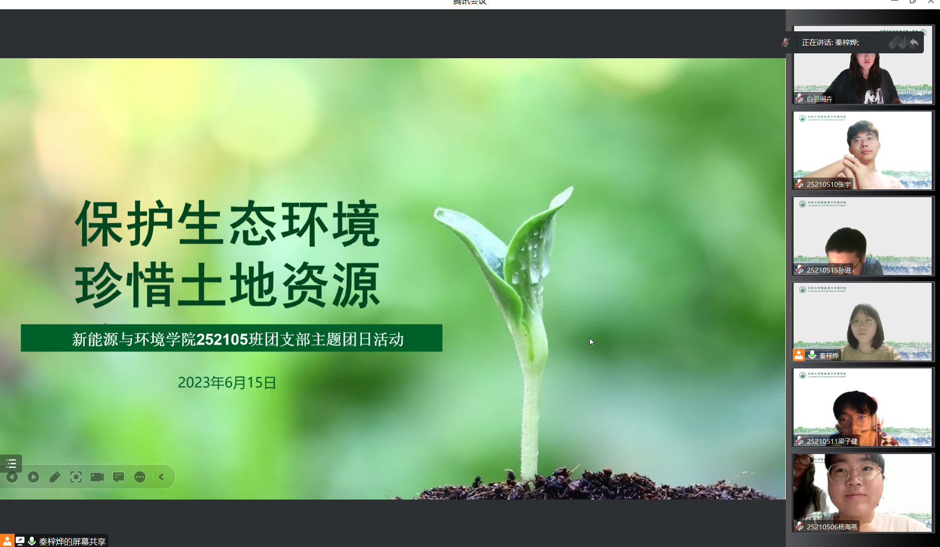 为响应世界环境日和全国土地日主题,培养同学们爱护环境、节约资源的意识,引导团员青年深刻认识塑料污染的严重影响和反对浪费的重要意义,争做可持续发展的倡导者、节粮爱粮的践行者、文明健康的示范者,太阳成tyc122cc集团团委开展“保护生态环境 珍惜土地资源”主题团日活动。