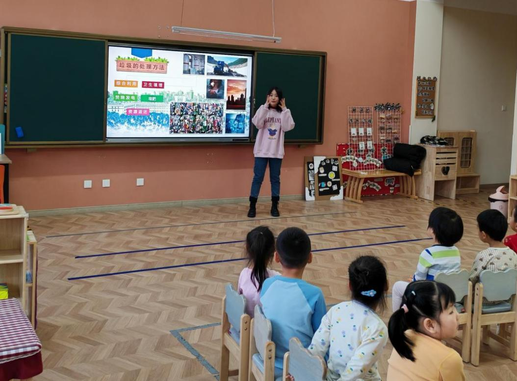 志愿者们从当前中国的垃圾产生现状引入主题,生动地为小朋友们讲述了垃圾污染的危害和处理垃圾的方式,从而引入垃圾分类即为变废为宝的理念。而后,志愿者们从专业的角度,用幽默风趣的语言,为小朋友们讲解了垃圾分类的方式,以及大部分常见的生活垃圾的分类,着重讲述的可回收垃圾在循环利用中的“前世今生”。最后,志愿者们与小朋友们进行了小游戏互动,用收集起来的废弃纸张,与小朋友们一起折叠出自己的分类垃圾桶,并绘上了对应的垃圾分类标识,起到了加深印象的作用。