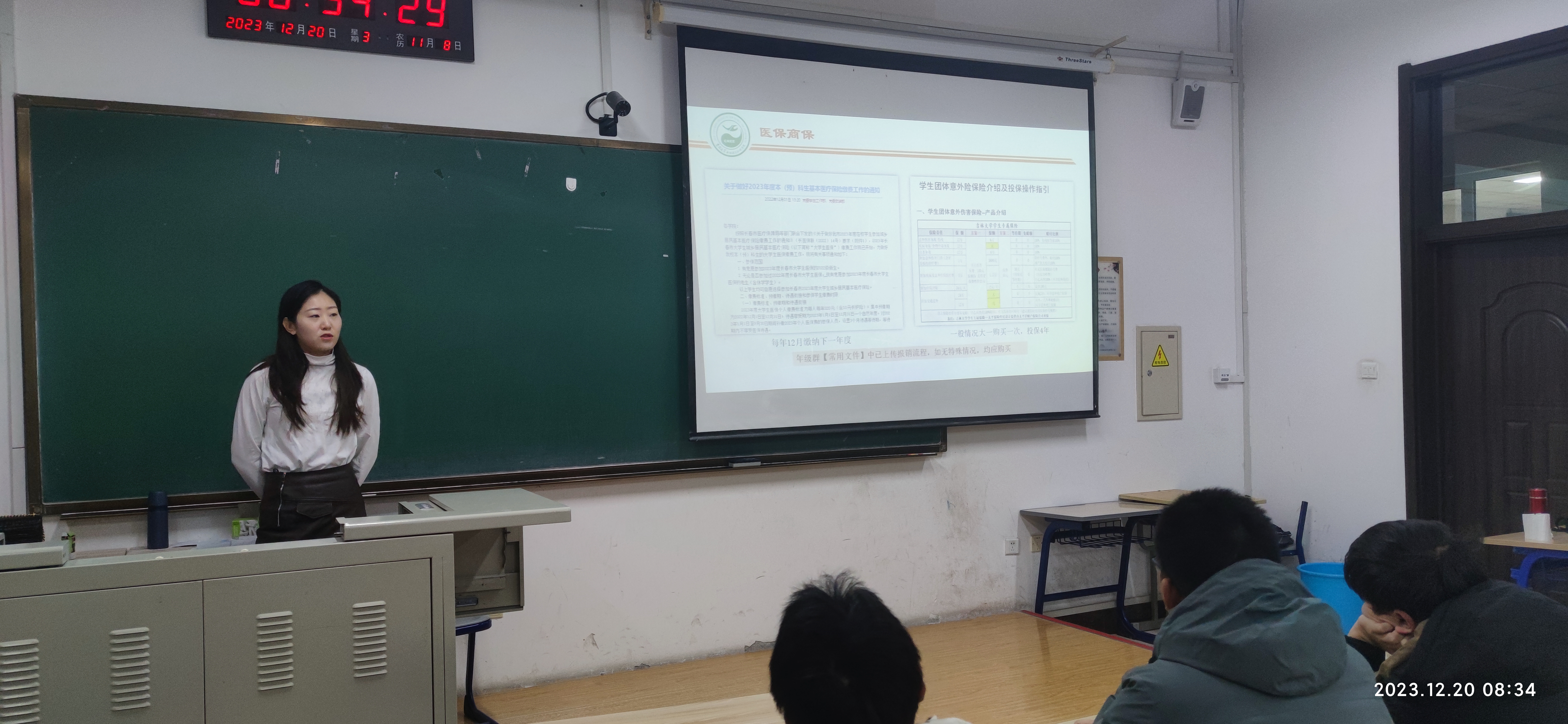 首先,老师在会上详细说明了医保、商保缴纳对员工及其家庭的重要性。缴纳保险不仅是防患于未然,为同学们生病就医节约开支提供了保障,同时也能用另一种方式宽慰远在家乡的亲人对同学们的安全健康的担忧。在公司老师和班级班委的督促下,年级同学商报参保率达到100%,力争做到人人有保障。