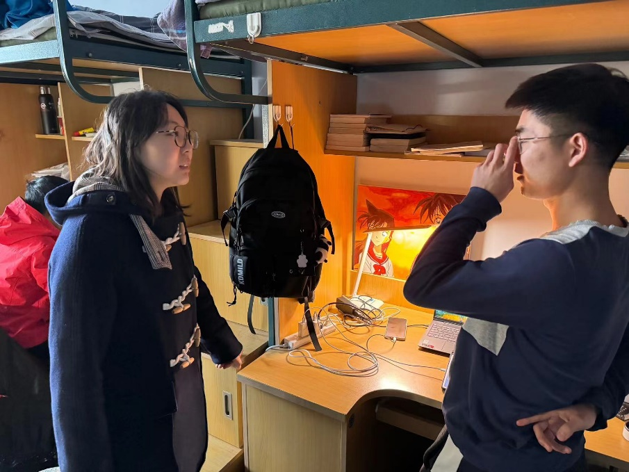 3月18、19日,2023级辅导员姜岳彤老师深入员工寝室,对2023级72间寝室进行检查,本次重点检查是否存在违规电器使用情况和公寓防火安全,姜老师叮嘱员工及时断电,养成用电良好习惯,防患于未然。