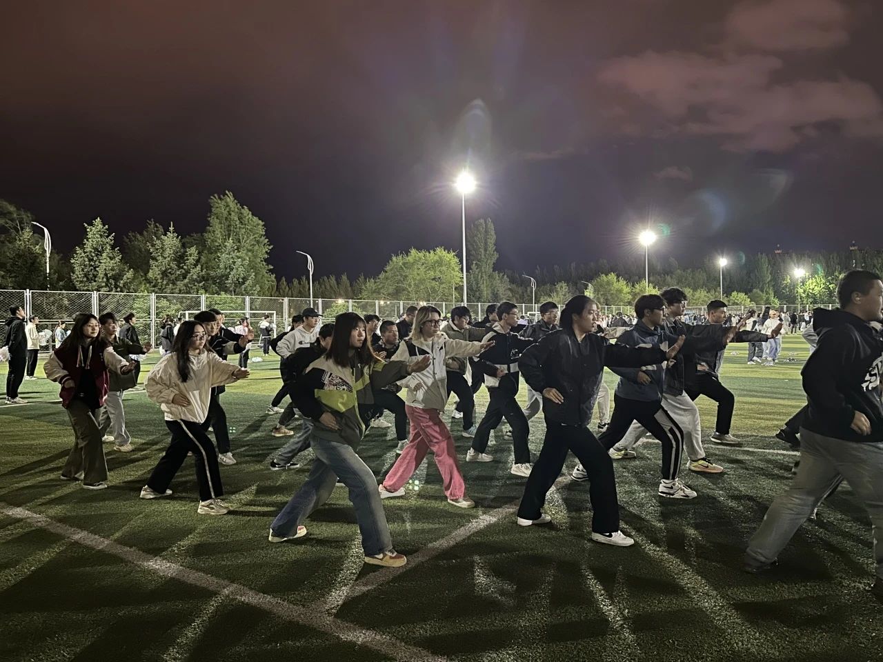 “远而望之,皎若太阳升朝霞;迫而察之,灼若芙蕖出渌波”。轻盈灵动,明快舒展,蹁跹而舞饱含热情活力。将自己高昂的激情融入舞蹈里,全身心沉浸在音乐节拍中,上扬的嘴角与闪耀的眼眸,演绎歌曲的每一个动作都流露着对青春的决不辜负、对祖国的一腔热血。翩若惊鸿,婉若游龙,幕幕精彩瞬间都离不开新能环er付出和努力,在不断的训练中成长、蜕变,终成运动场上一道靓丽的风景线书写青春华章。