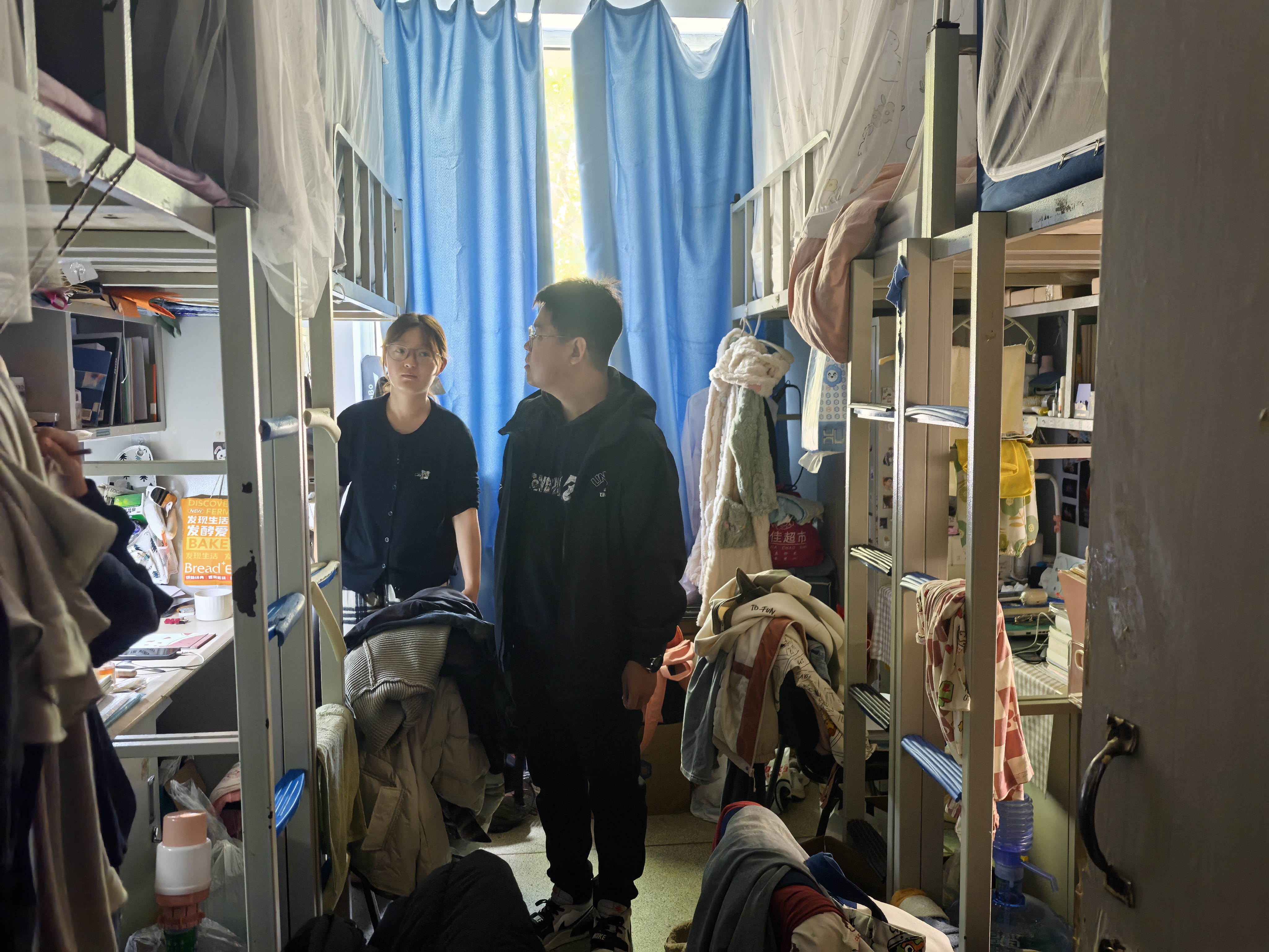 10月10日,2023级辅导员姜岳彤老师进入南苑二公寓寝室,重点了解寝室温度,检查违章电器,提醒宿舍较乱的同学及时收拾寝室。同日,姜老师走进《地学基础》课堂,提醒同学们前排就坐,认真听课。本次课程共1人请假,无人迟到。