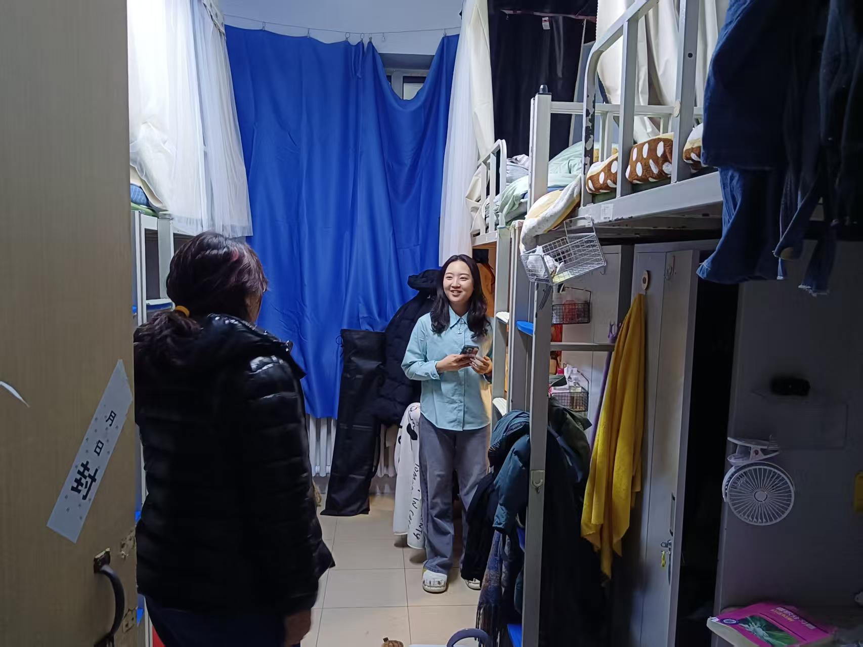 辅导员老师们分别进入南苑一公寓、南苑二公寓、南苑三公寓、朝阳五公寓、朝阳七公寓五所公寓,通过晚点名的方式准确掌握员工返校动态,提醒同学们保持寝室卫生,养成良好的生活习惯,以全新的面貌迎接新学期。走寝过程中,公司党委副书记、2024级辅导员吴哲老师询问了同学们返校是否习惯,叮嘱大家新学期按时上课认真听讲;2023级辅导员姜岳彤老师叮嘱同学们认真面对新学期的学习任务,实现更大的自我提升;2022级辅导员母茂松老师提醒同学们大学进入毕业选择的重要关口,欢迎同学们随时来聊聊制定专属成长方案;2021级辅导员李薇老师为即将查分的考研员工送上祝福,为正在备战公务员考试、找工作的同学打气加油。