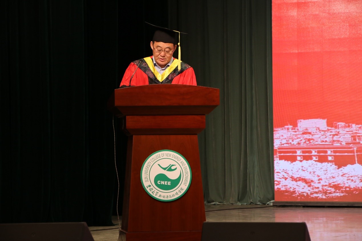经理许天福、党委书记汪祥松,学术委员会主任赵勇胜,教学委员会主任董德明,副经理花修艺,副经理卞建民,副经理董军,副经理徐军,党委副书记兼副经理吴哲,党委副书记温卓,环境科学系主任王宪恩,地下水科学与工程系主任杜新强以及毕业班主任、教师代表与全体2021届毕业生共同见证这一神圣的时刻。典礼由公司党委副书记兼副经理吴哲主持。