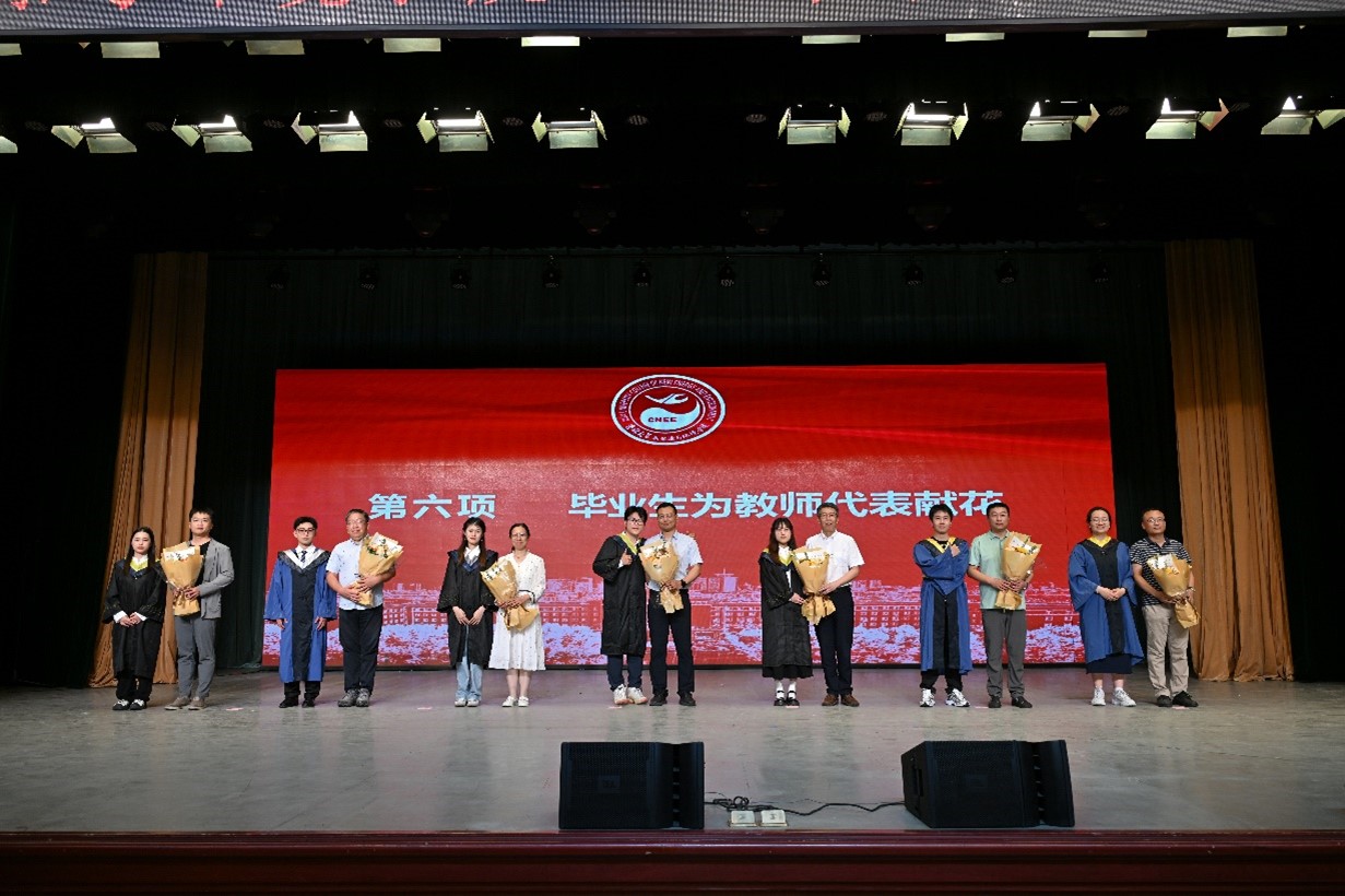 典礼前播放了公司教师毕业寄语视频,本科毕业年级辅导员霍美汐、研究生和本科生代表献唱《如果我们不曾相遇》。毕业典礼在激昂的国歌声中开始,公司党委副书记兼副经理吴哲宣读《关于表彰2024届优秀毕业生的决定》,公司经理许天福和党委书记汪祥松为优秀毕业生颁发证书。公司党委副书记温卓宣读《太阳成tyc122cc集团关于授予2024届毕业生学位的决定》,主礼教授许天福教授、李鸿雁教授、郑娜教授、卞建民教授、花修艺教授、董军教授为319名毕业生授予学位、拨动流苏。学位授予仪式后,毕业生代表为优秀毕业论文指导教师献花,感谢老师们的辛勤付出。副经理徐军为2024届员工年级理事颁发聘书,呼吁员工们持续关注公司和公司发展,为母校建设建言献策。