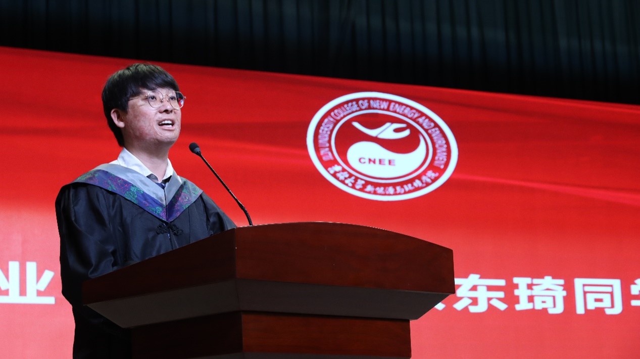 博士毕业生潘紫东和本科毕业生张东琦分别作为毕业生代表发言,他们分享了在校的成长历程,祝福毕业生在未来的不懈奋斗中再创佳绩。环境工程系主任张大奕教授致辞,张老师鼓励毕业生作为环境领域未来的从业者、开拓者和领导者,承担起对环境和社会的责任,展现出积极进取、创新开拓的精神,成为奋发有为的时代新人。林岚作为优秀员工代表,回顾了自己在校期间的难忘时光,分享了工作中建功立业的际遇,激励毕业生要不忘初心,行稳致远,心怀家国。经理许天福在最后的致辞中表示,希望同学们要有信心、定力和决心,做走在新时代前列的奋进者、开拓者、奉献者;希望同学们厚植家国情怀,在国之大者中成就小我;希望同学们保持一份热爱,怀揣梦想,笃定前行。