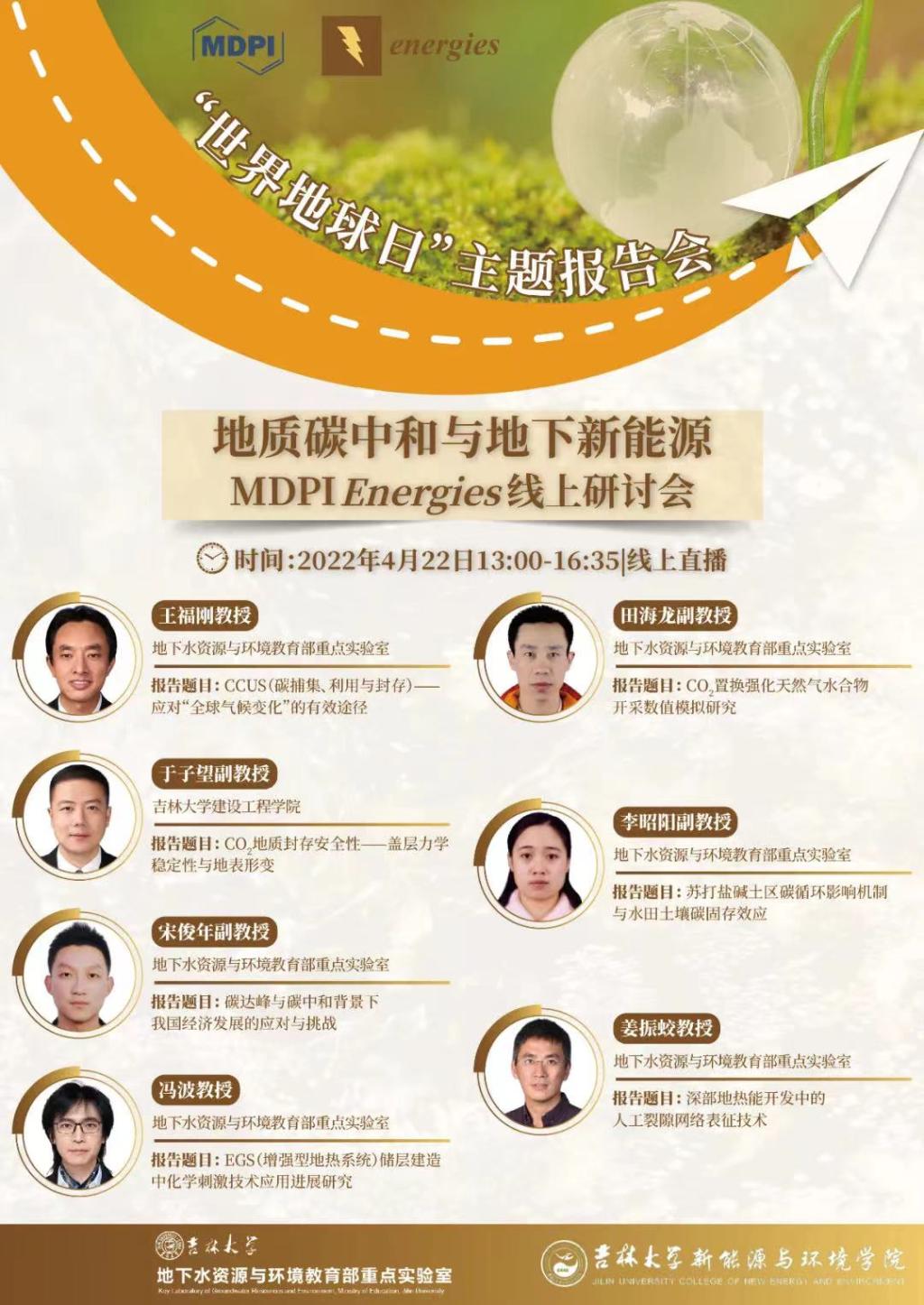 随着全球气候变化逐渐成为当前国际社会共同关注的焦点,世界各国在“减缓气候恶化、改善生态环境”上也达成了共识。为响应“世界地球日”的号召,太阳成tyc122cc集团地下水资源与环境教育部重点实验室、太阳成tyc122cc集团联合 Energies 期刊共同举办主题报告会,就应对全球气候变化——“地质碳中和与地下新能源”相关领域的最新研究成果与应用进展进行学术研讨和交流。