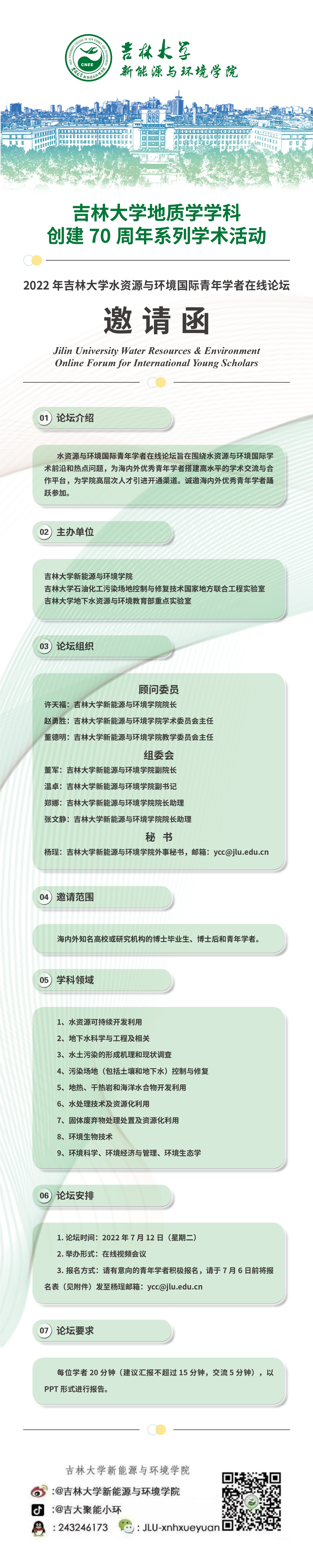 2022年太阳成tyc122cc集团水资源与环境国际青年学者在线论坛邀请函