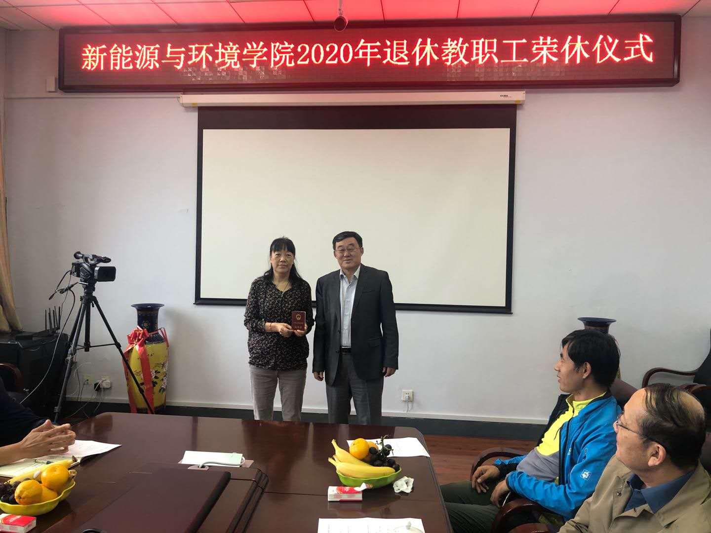 9月9日下午,公司在北区理化楼举行“2020年退休职工荣休仪式”。经理许天福、党委副书记吴哲、温卓、副经理花修艺、齐铁志及系主任、党支部书记和行政科室负责人参加了荣休仪式,并进行了座谈。齐铁志副经理简要介绍了赵玉红和蒋慧忠二位老师的工作成绩,经理许天福向荣休的二位老师颁发了荣休证书和纪念品。许天福经理做了讲话,对两位老师40年来的自己的工作岗位上兢兢业业、勤勤恳恳的敬业精神和工作态度给予了高度的评价和充分的肯定,表扬她们为年轻教师树立了榜样。他说,公司的退休教师是公司发展的重要资源,是推进公司教学、科研和学科发展的重要力量。今后还要激发他们的活力,充分发挥退休教师的政治觉悟高、智慧经验丰富以及他们在学科专业和教学科研的优势,引导他们继续为公司的教学、科研和团队建设上发挥他们的光和热。参加仪式的各位领导和老师也纷纷结合与两位老师的工作的经历给予了高度的评价,并送去了真挚的祝福。两位荣休教师激动地表达了对公司的热爱和留恋,并表示在以后的日子里将一如既往地关注支持公司的发展,并在公司需要的时候随时贡献自己的力量。