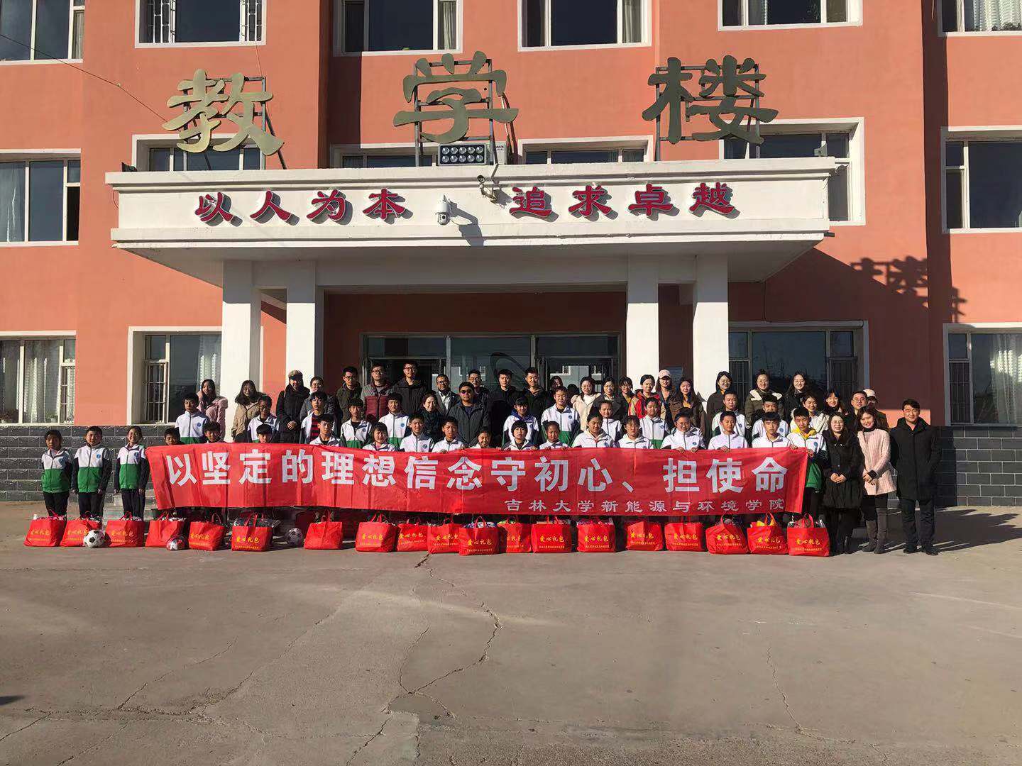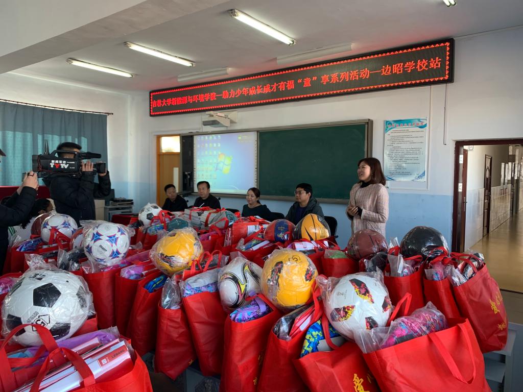 2019年11月7日,新能源与环境公司党委副书记兼副经理吴哲、党委副书记温卓和团委书记孟婧莹、环境科学系本科生党支部书记钟宇博带领25位本科生和研究生党员,发挥党员先锋模范作用,深入吉林省通榆县边昭镇开展助力少年成长成才有福“童”享系列活动。本次活动助力青少年健康成长,赠送图书、学习用品、体育用品共计近两万元。