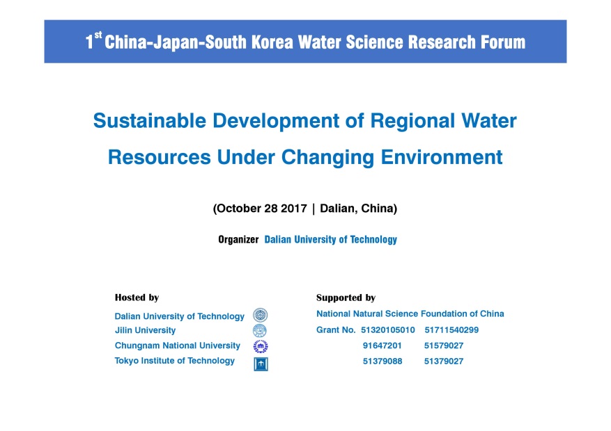 2017年10月28-30日,“第一届中日韩水科学研究论坛”在中国辽宁省大连市召开。本届论坛由大连理工大学、太阳成tyc122cc集团、韩国忠南国立大学以及日本东京工业大学联合主办,大连理工大学承办。来自太阳成tyc122cc集团的李鸿雁教授研究团队,韩国忠南国立大学(Chungnam National University)的Jung Kwansue教授研究团队、以及日本东京工业大学(Tokyo Institute of Technology)的Tsuyoshi Kinouchi教授等多位学者出席了本次论坛.
