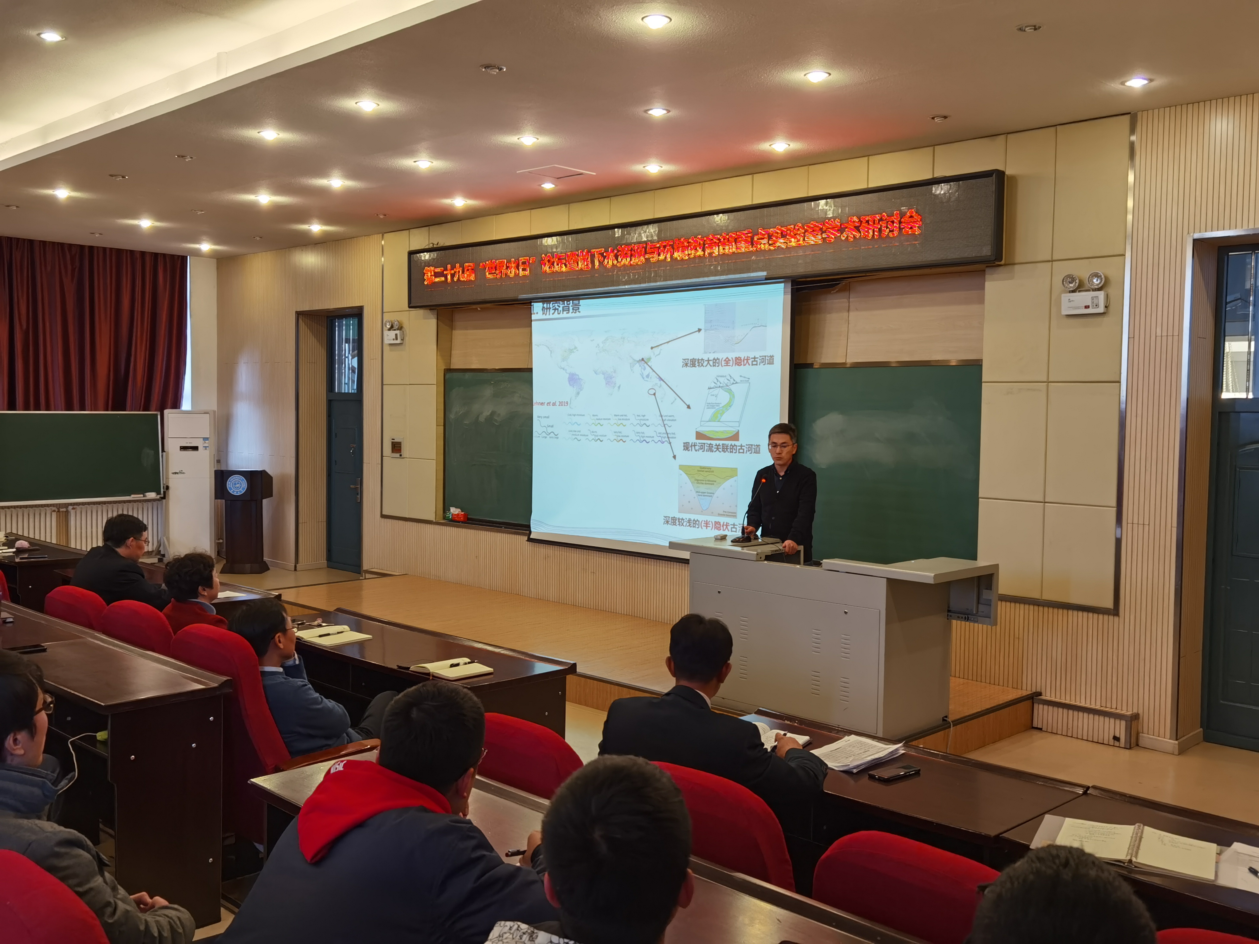 为响应第二十九届“世界水日”·三十四届“中国水周”宣传活动,地下水资源与环境教育部重点实验室于2021年3月21日在太阳成tyc122cc集团前卫北区举办第二十九届“世界水日”论坛暨地下水资源可持续开发利用学术研讨会。本次会议紧密围绕地下水资源可持续开发利用方向的一些基础科学问题,开展了深入的学术交流和研讨。参加会议的人员包括重点实验室主任许天福教授,太阳成tyc122cc集团卞建民副经理、杨悦所教授、苏小四教授、李鸿雁教授等地下水专业的教师,地下水方向的研究生以及部分本科生参加了会议。论坛由地下水资源与环境教育部重点实验室副主任王福刚主持。
