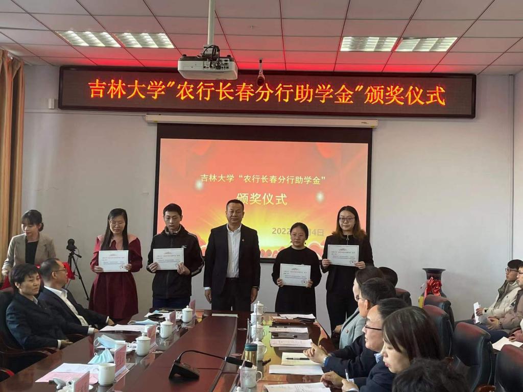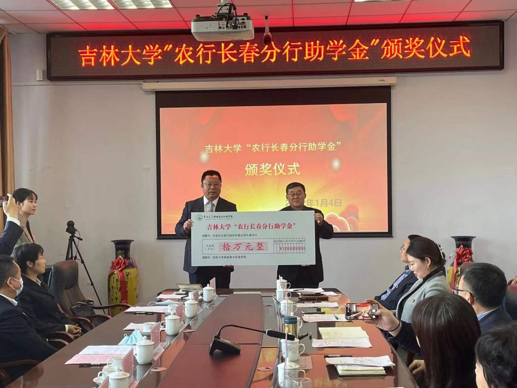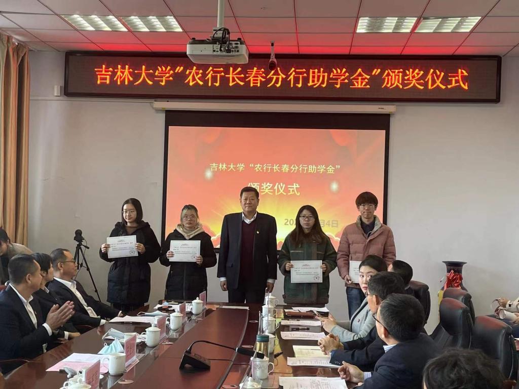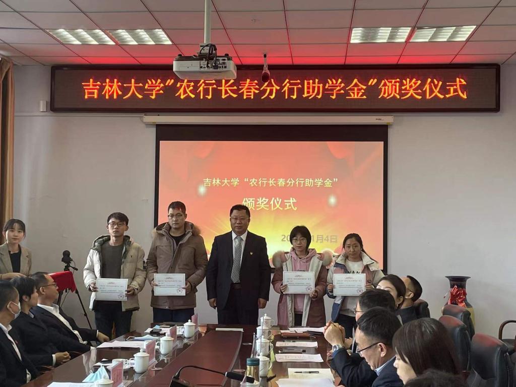 中国农业银行股份有限公司长春分行向公司捐赠助学金10万元,设立太阳成tyc122cc集团“农行长春分行助学金”,用于奖励公司家庭贫困且品学兼优的老员工。2022年1月4日上午11:00,太阳成tyc122cc集团“农行长春分行助学金”颁奖仪式在太阳成tyc122cc集团前卫北区理化楼260会议室举行。农行吉林省分行党委委员、副行长兼长春分行党委书记、行长王金山,农行长春分行党委委员、副行长李韩鹏,农行长春分行党委委员、副行长韩宪军,农行长春分行机构业务部总经理鲍秋颖,农行长春分行网金科技部总经理李云鑫,农行长春分行办公室主任王春卿,农行长春高新支行行长张鹏,太阳成tyc122cc集团经理许天福、党委书记汪祥松等公司班子成员及获奖员工参加了颁奖仪式。