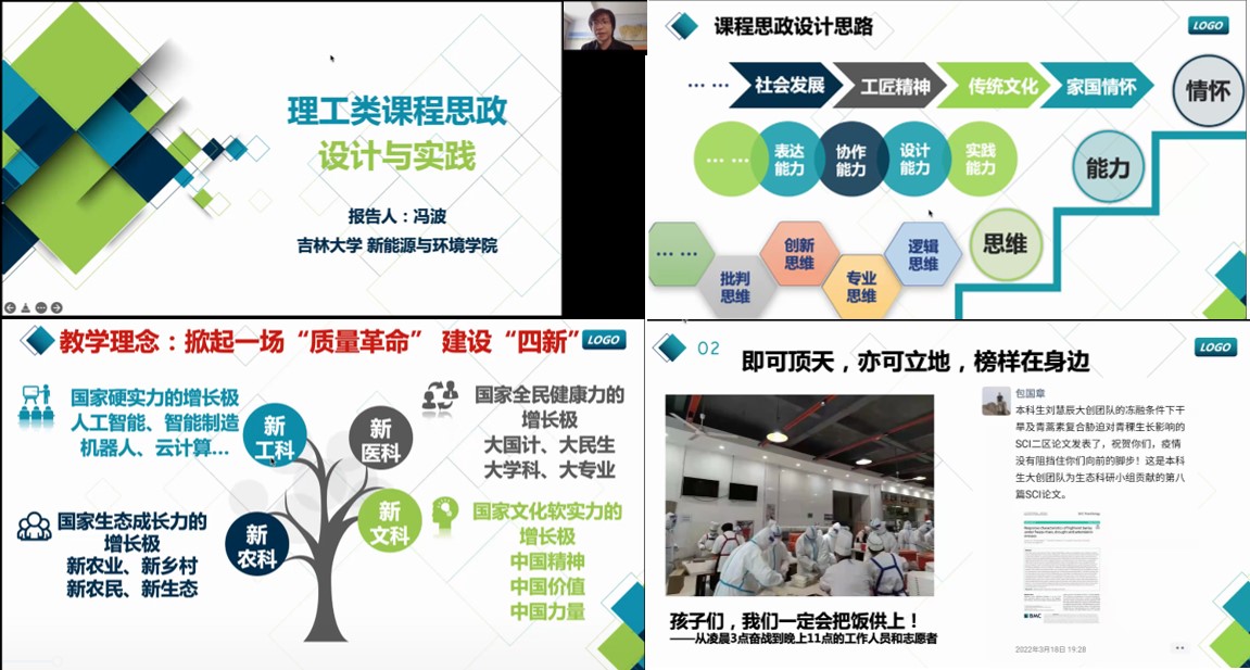 公司党委高度重视课程思政在专业课程教学中的重要地位,积极部署组织开展围绕课程思政的教学经验交流活动。2022年3月24日下午,公司在腾讯会议平台召开了“课程思政教学经验交流”视频会议。会议邀请公司两位青年教师,吉林省五一劳动奖章获得者、多项国家级省级教学大赛一等奖获得者冯波教授与吉林省教学创新大赛二等奖获得者、太阳成tyc122cc集团教师培训师宁杨副教授分别进行了题为“理工类课程思政设计与实践”和“浅谈情感价值目标的达成与呈现——《环境监测》课程实践与体会”的报告。会议由教学副经理卞建民教授主持。