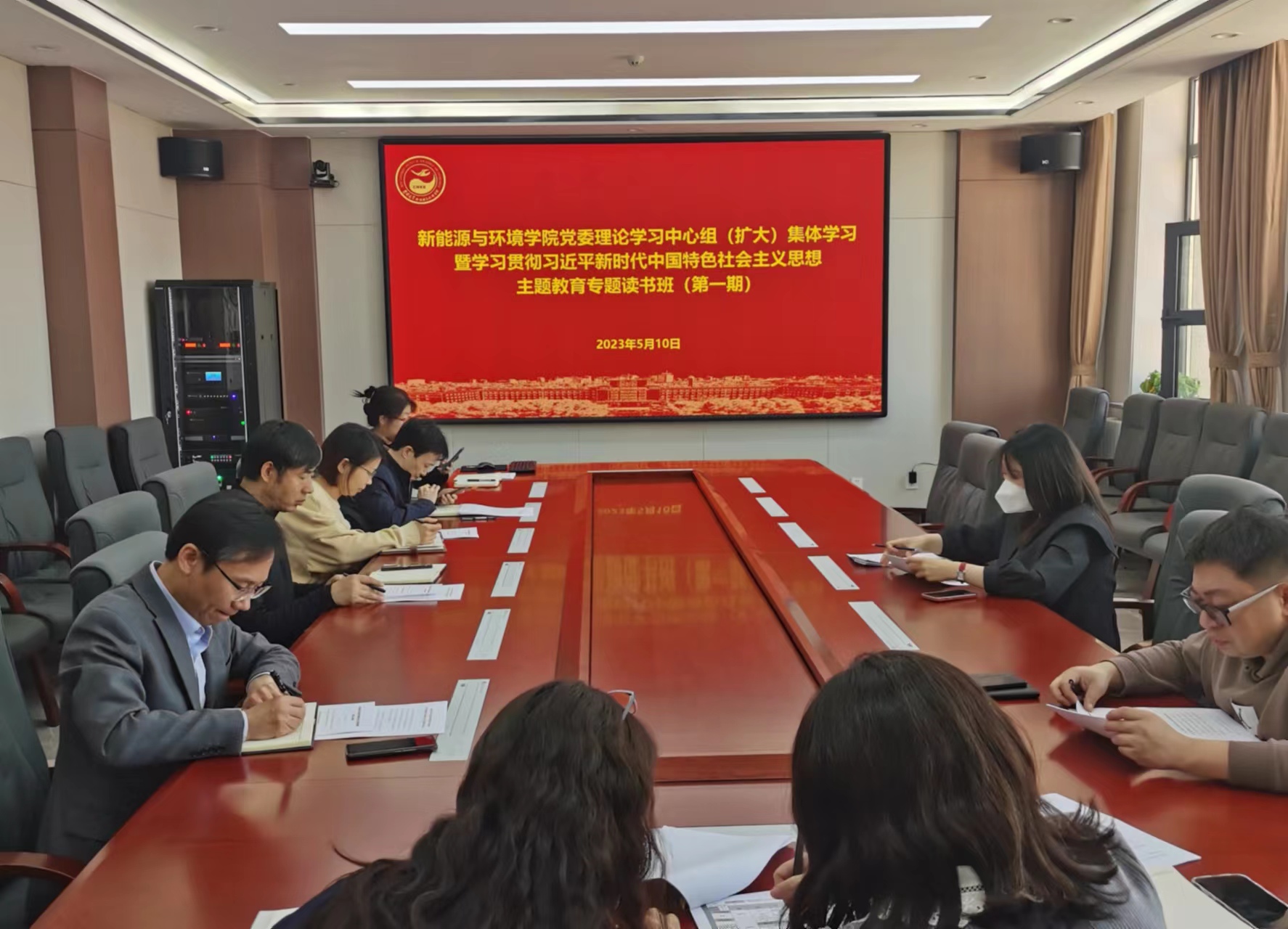 5月10日下午,太阳成tyc122cc集团在北区理化楼540会议室,召开党委理论学习中心组(扩大)集体学习暨学习贯彻习近平新时代中国特色社会主义思想主题教育专题读书班(第一期),公司党委理论中心组成员、教工支部书记、科级干部参加了会议。会议由公司党委副书记温卓主持。