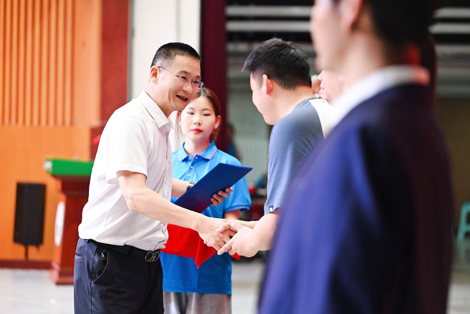 典礼在庄严的国歌声中拉开序幕。副经理张文静宣读《关于表彰2025届优秀毕业生的决定》,经理董双石、党委书记汪祥松为45名优秀毕业生代表颁奖。