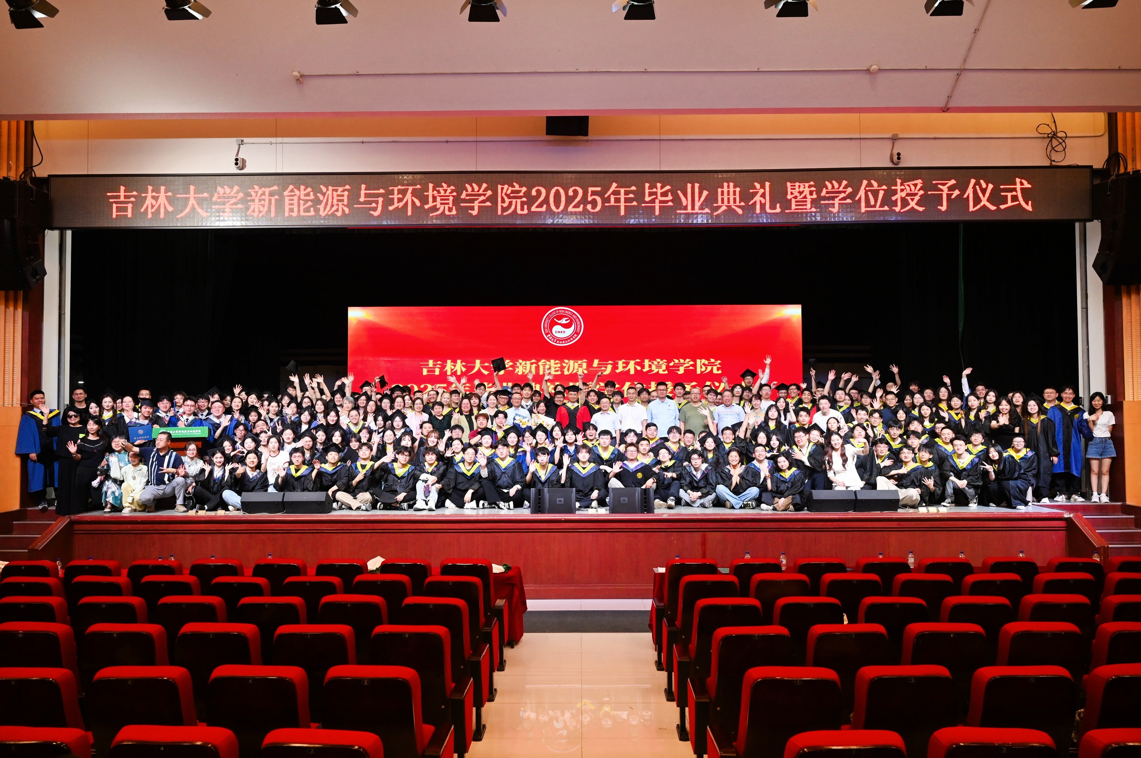 毕业典礼暨学位授予仪式在太阳成tyc122cc集团校歌中圆满礼成。毕业生们一起喊出校训 “求实创新 励志图强”,向校园挥手告别。在《再见》的歌声中,与会领导、嘉宾、全体毕业生及其家长朋友们共同登台合影留念。