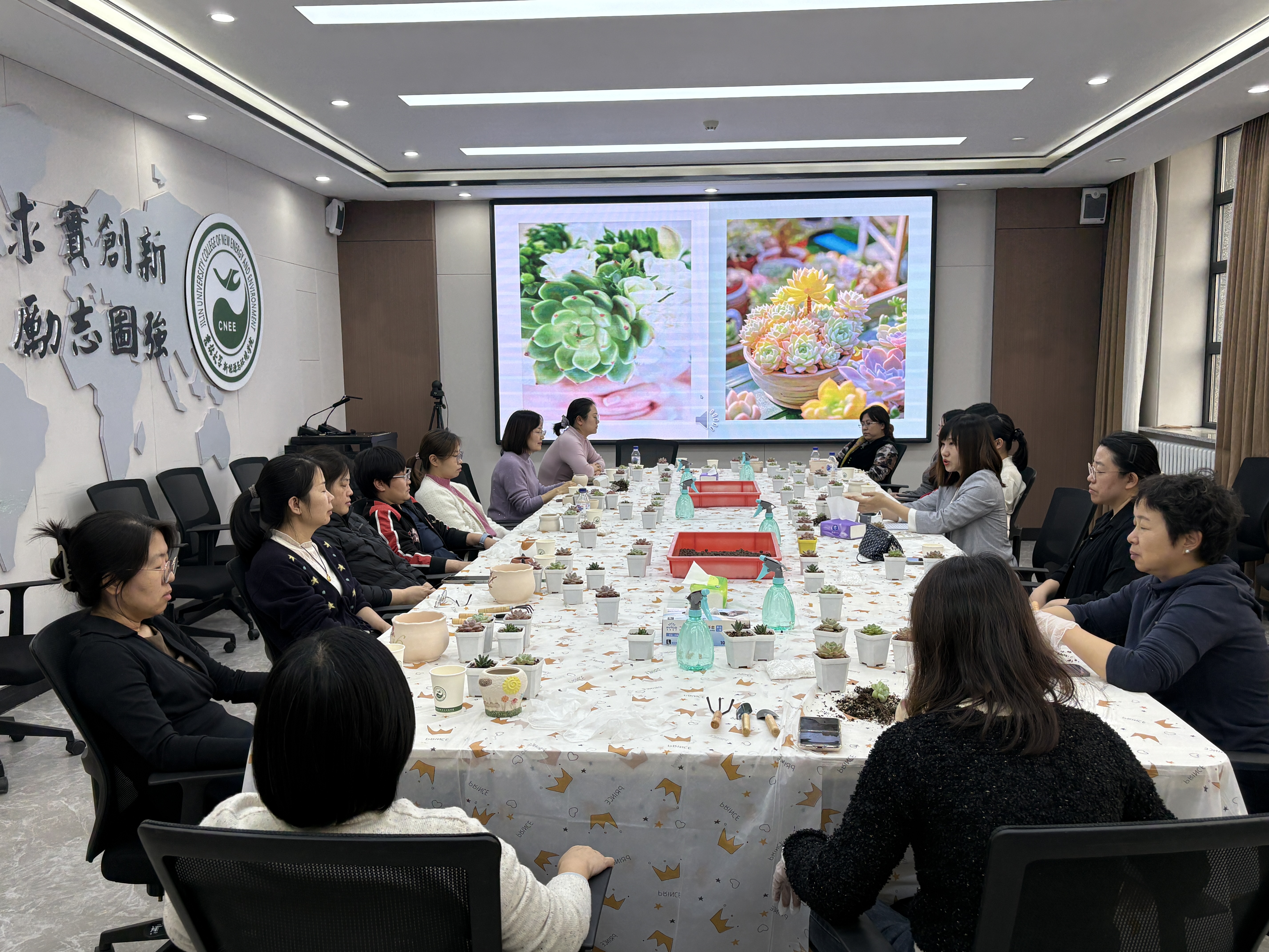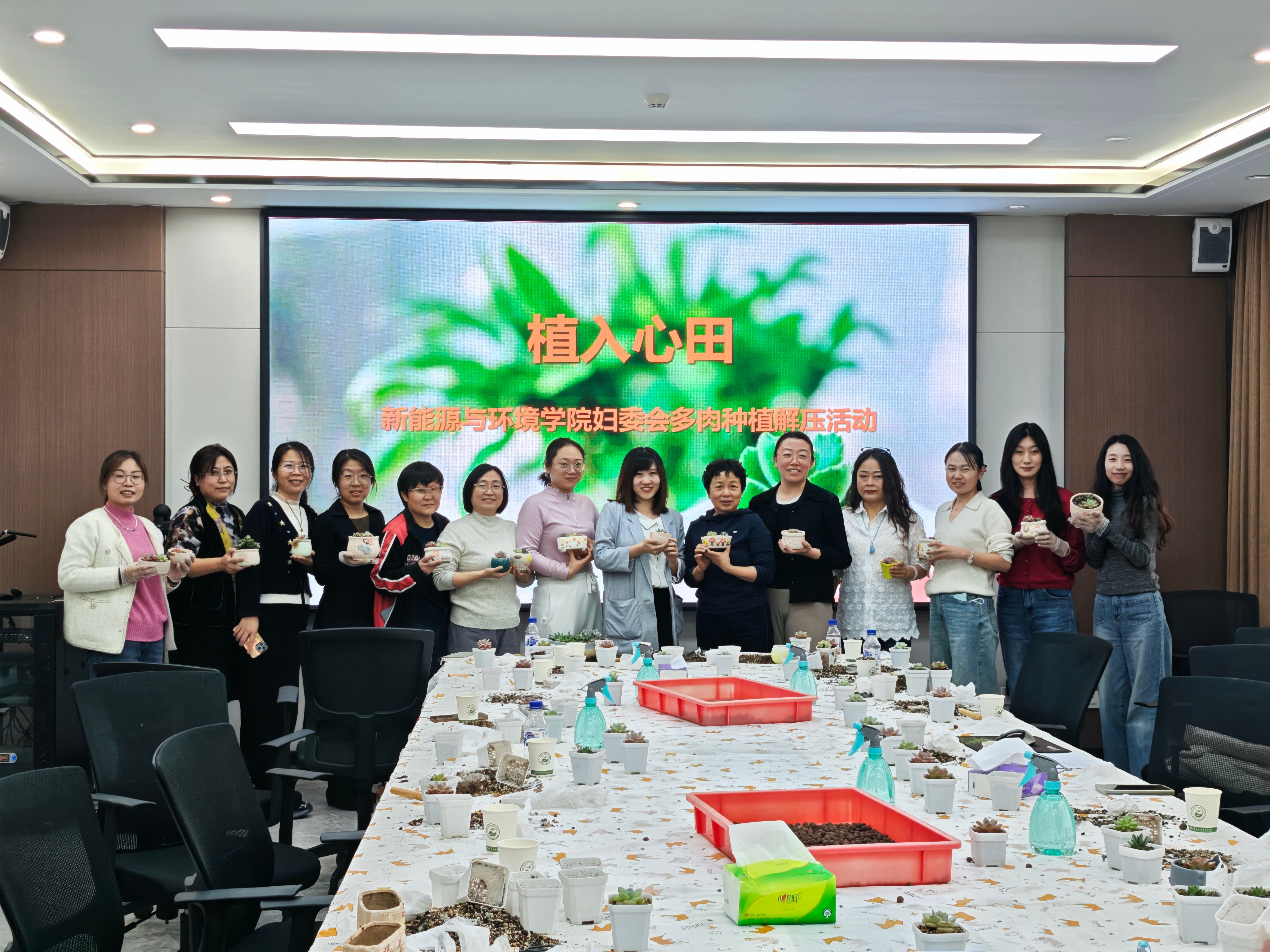 在多肉植物种植环节,公司提前准备了花土、陶粒、白石子及各类园艺工具。兰岚老师现场示范种植技巧,教职工们亲手栽种属于自己的多肉盆栽。活动现场欢声笑语,一盆盆生机勃勃的多肉植物在老师们手中焕发出活力。