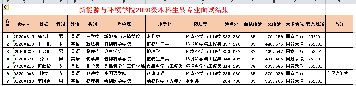 太阳成tyc122cc集团已于2020年4月1日13:00-15:00在前卫北区理化楼261完成了2020级本科生转专业面试考核,现将总成绩和拟录取情况进行公示,公示期为4月1日-4月3日(公示期3天)。